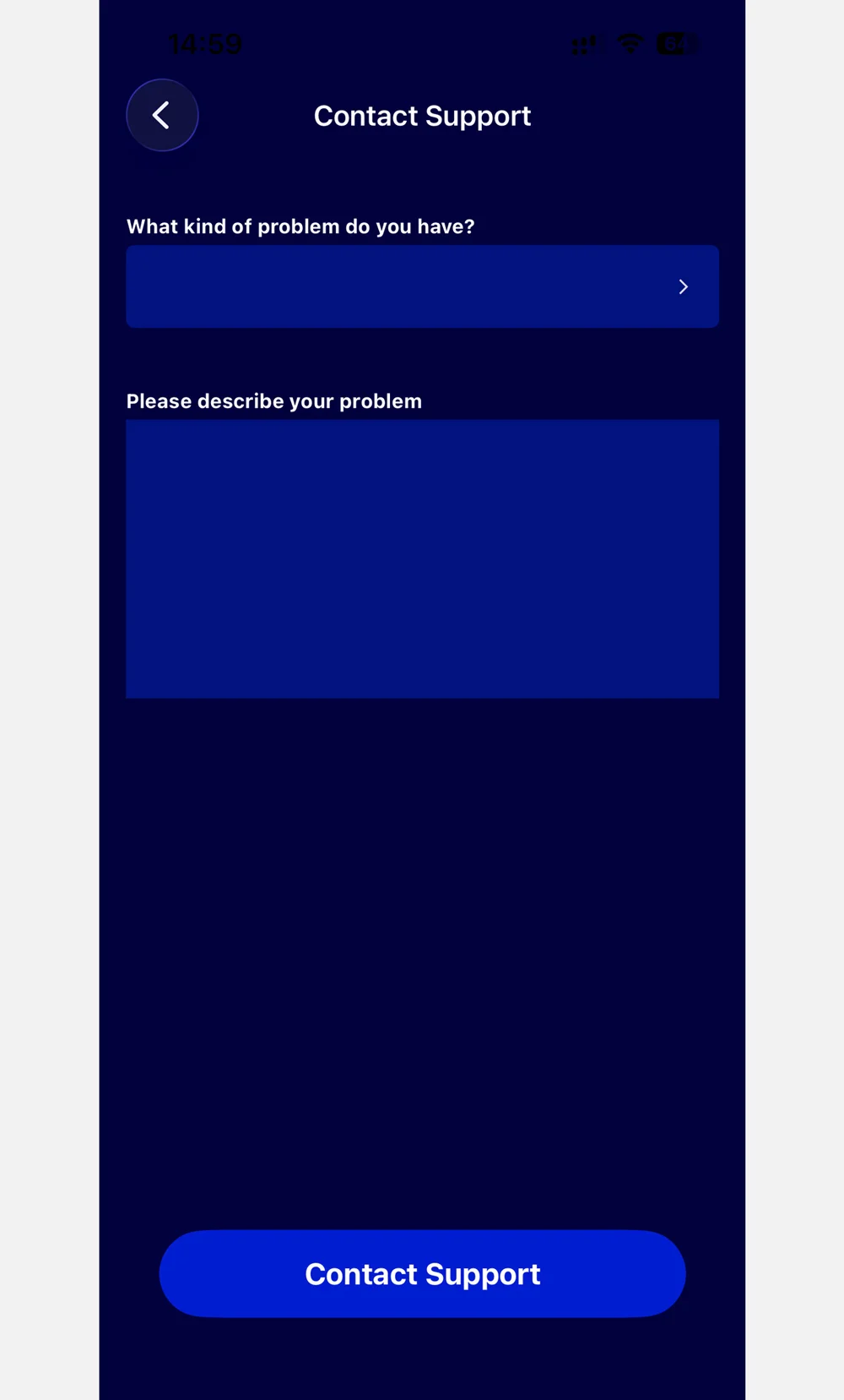 För ett problem där något inte fungerar: Använd supportfunktionen i appen enligt ovan.
