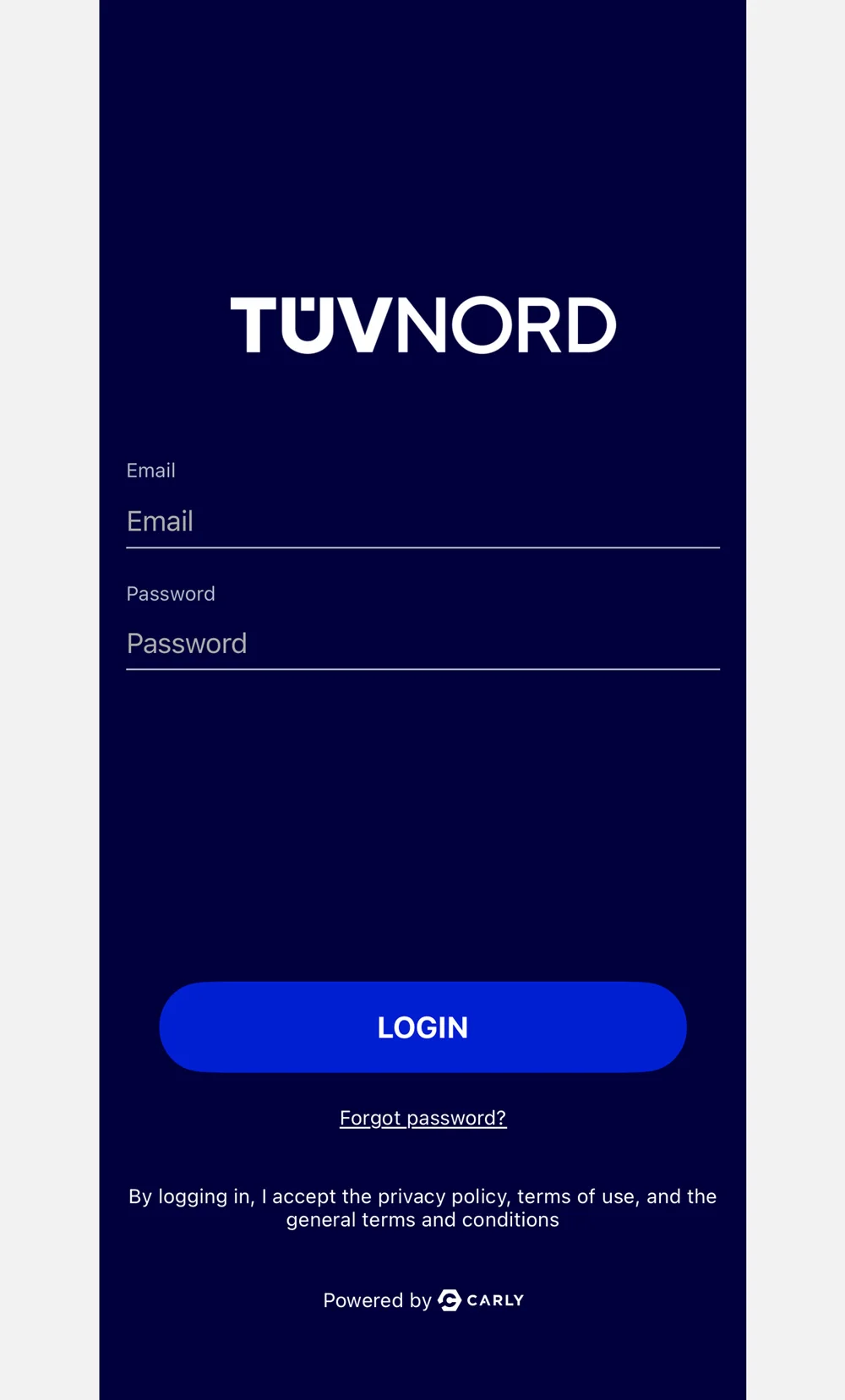 Lösenordet har automatiskt skickats till varje användares e-post adress. Logga in på appen genom att använda din e-post adress och lösenordet från din inkorg.