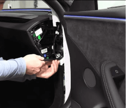 På vissa nyare modeller är anslutningen bakom handskfacket på passagerarsidan och kräver att man kommer in bakom genom sidopanelen.