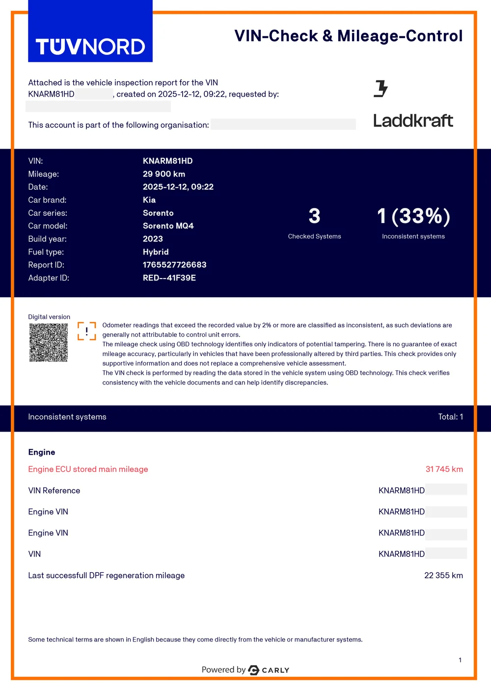 VIN & Mätarställningskontroll