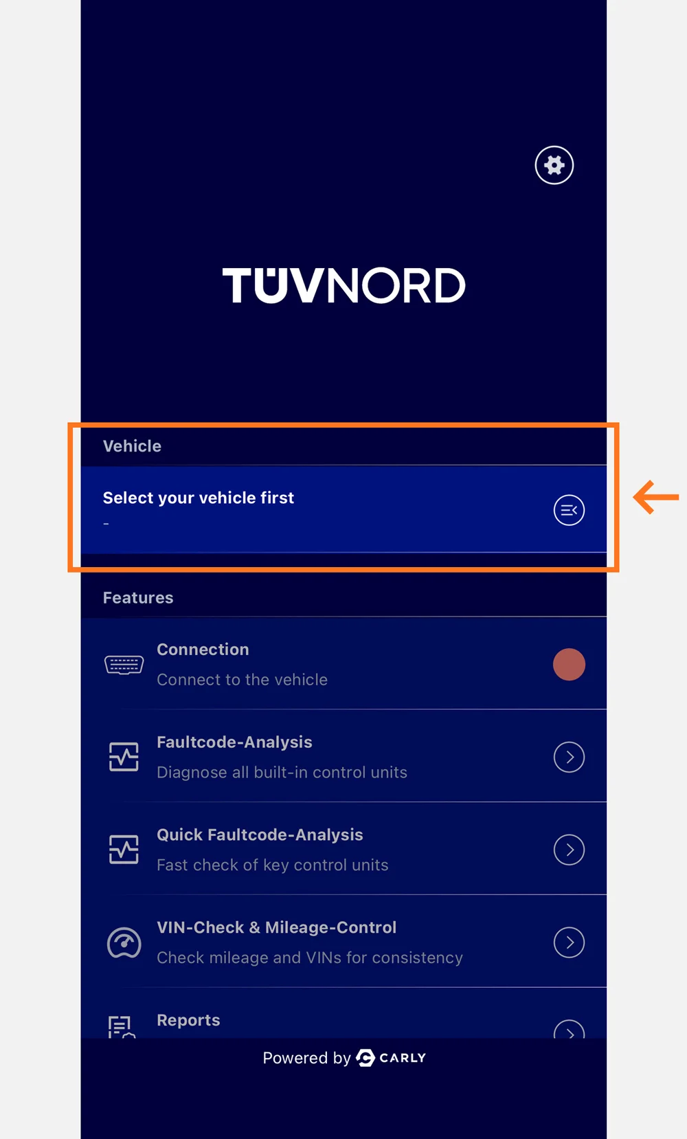 Klicka på fältet VIN/VEHICLE och välj ”Scan VIN”.
